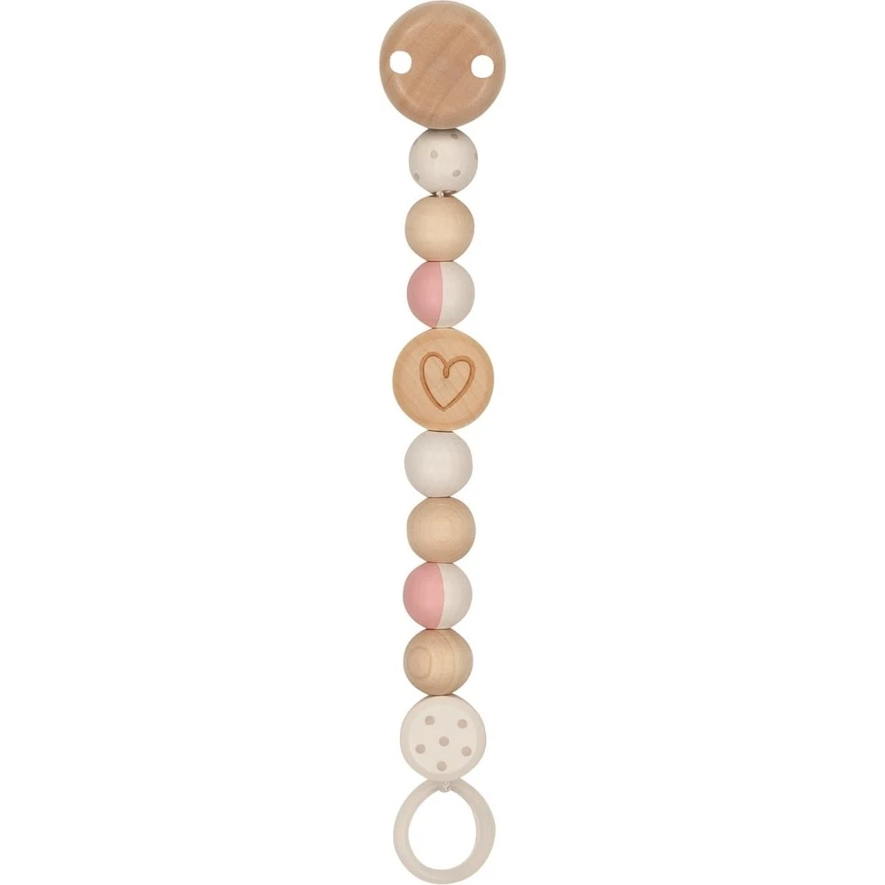 La tétine est attachée à un anneau en plastique. Grâce à son design mignon avec un petit cœur et une coloration subtile, il s’adapte à toutes les tenues de bébé et devient rapidement un joli accroche-regard. Cette attache sucette est en bois et peut être nettoyée avec un chiffon humide.