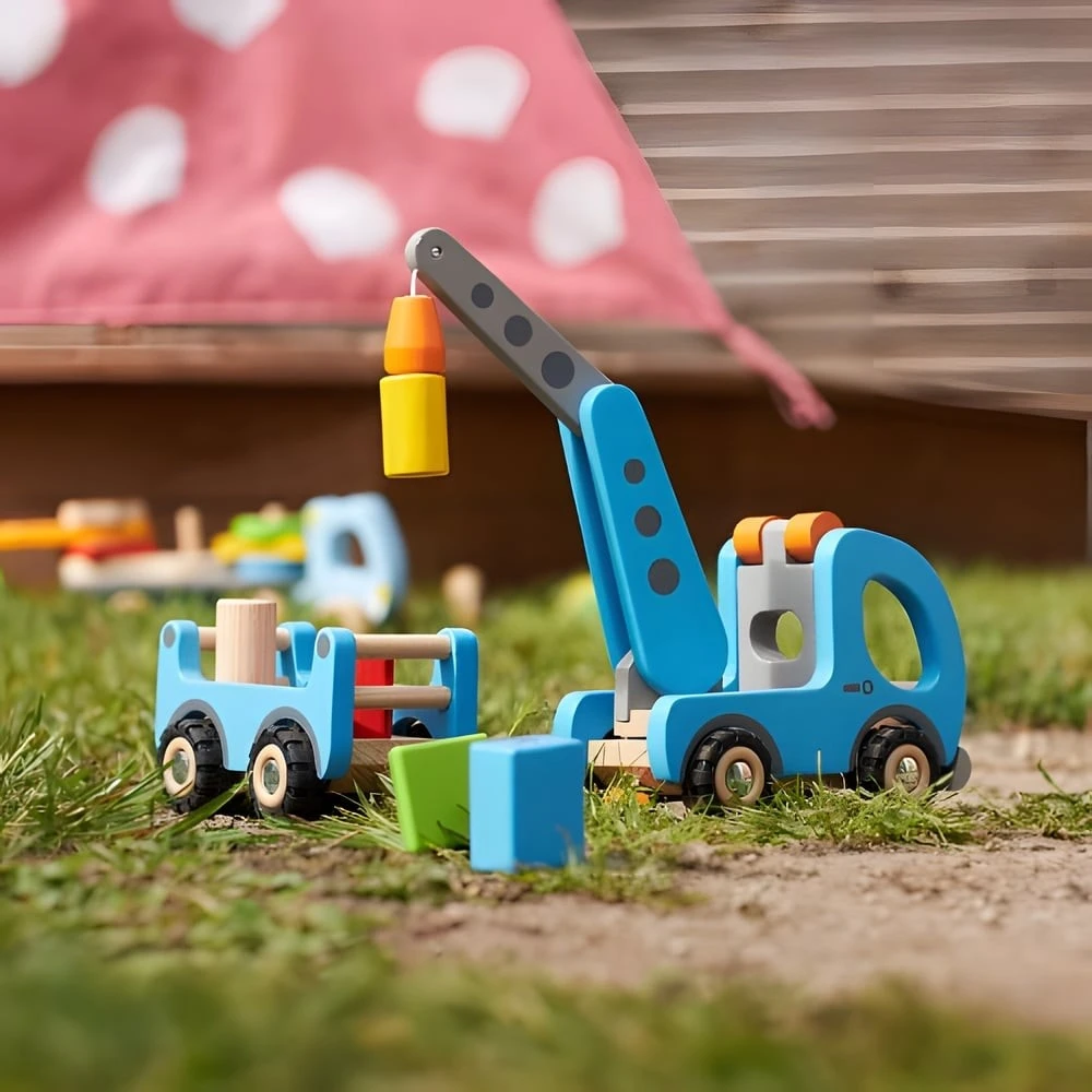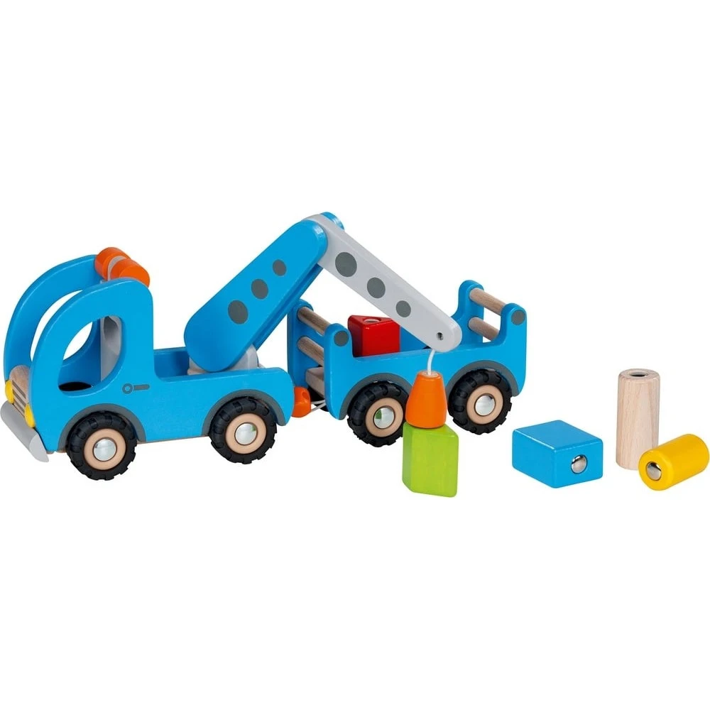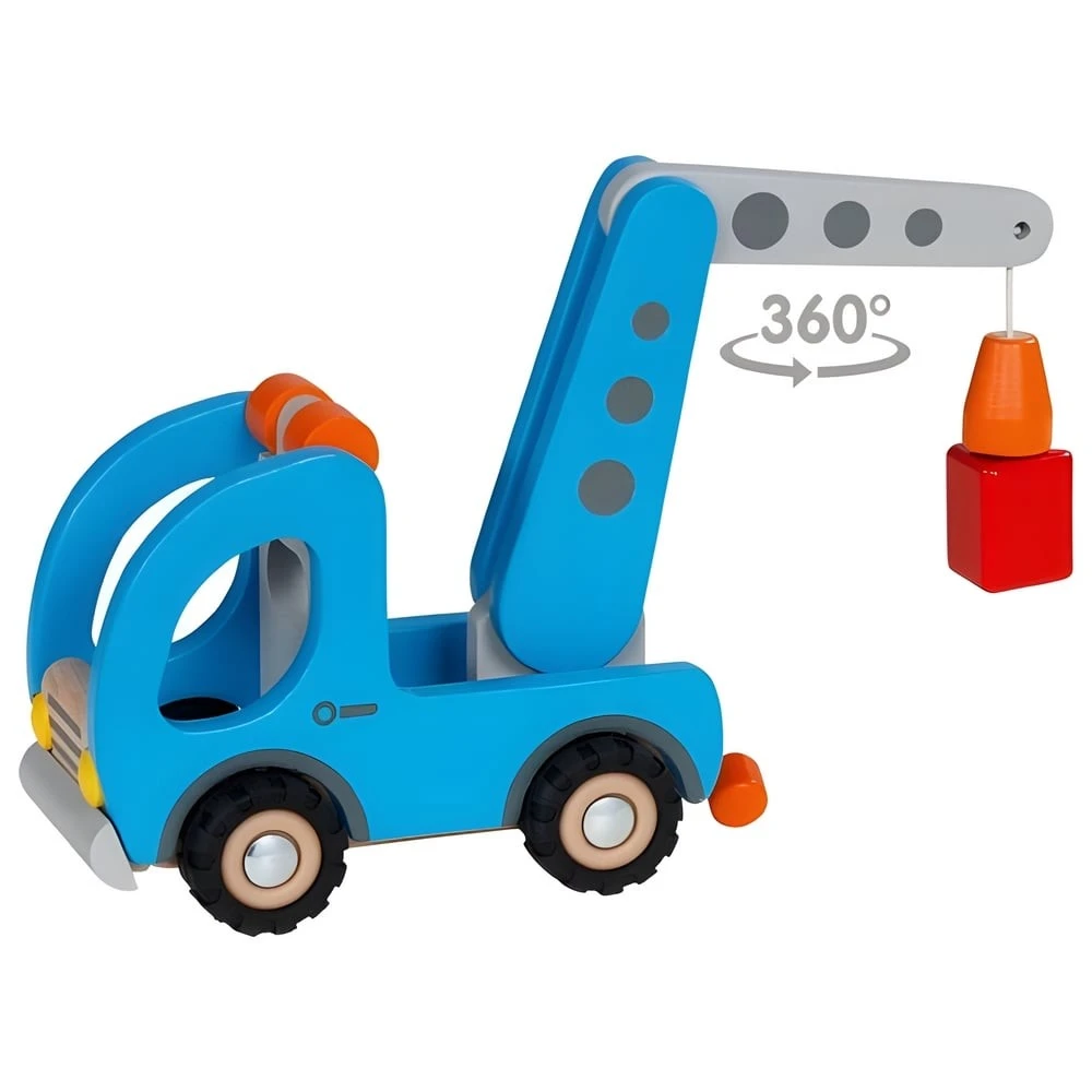 Pour les petits fans de travaux publics dès 36 mois, éveil émotionnel garanti avec ce joli jouet en bois Camion plateau-grue !