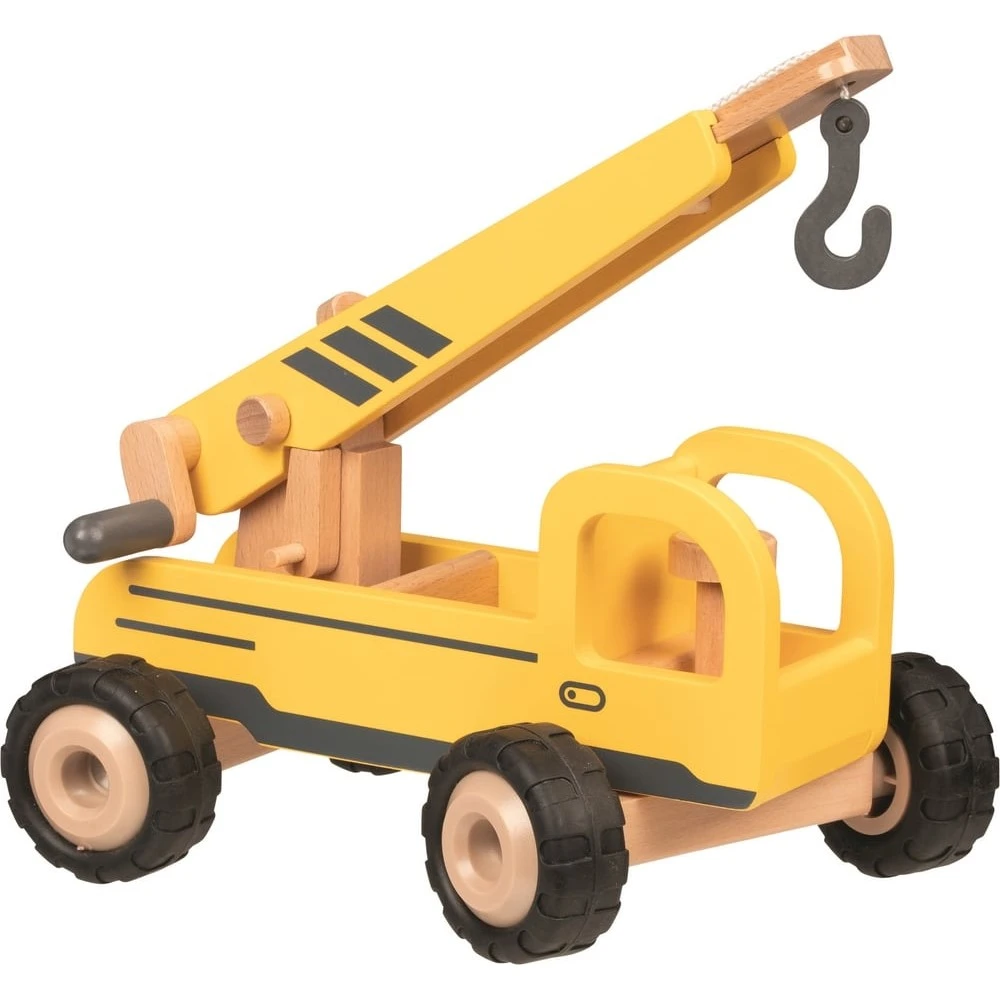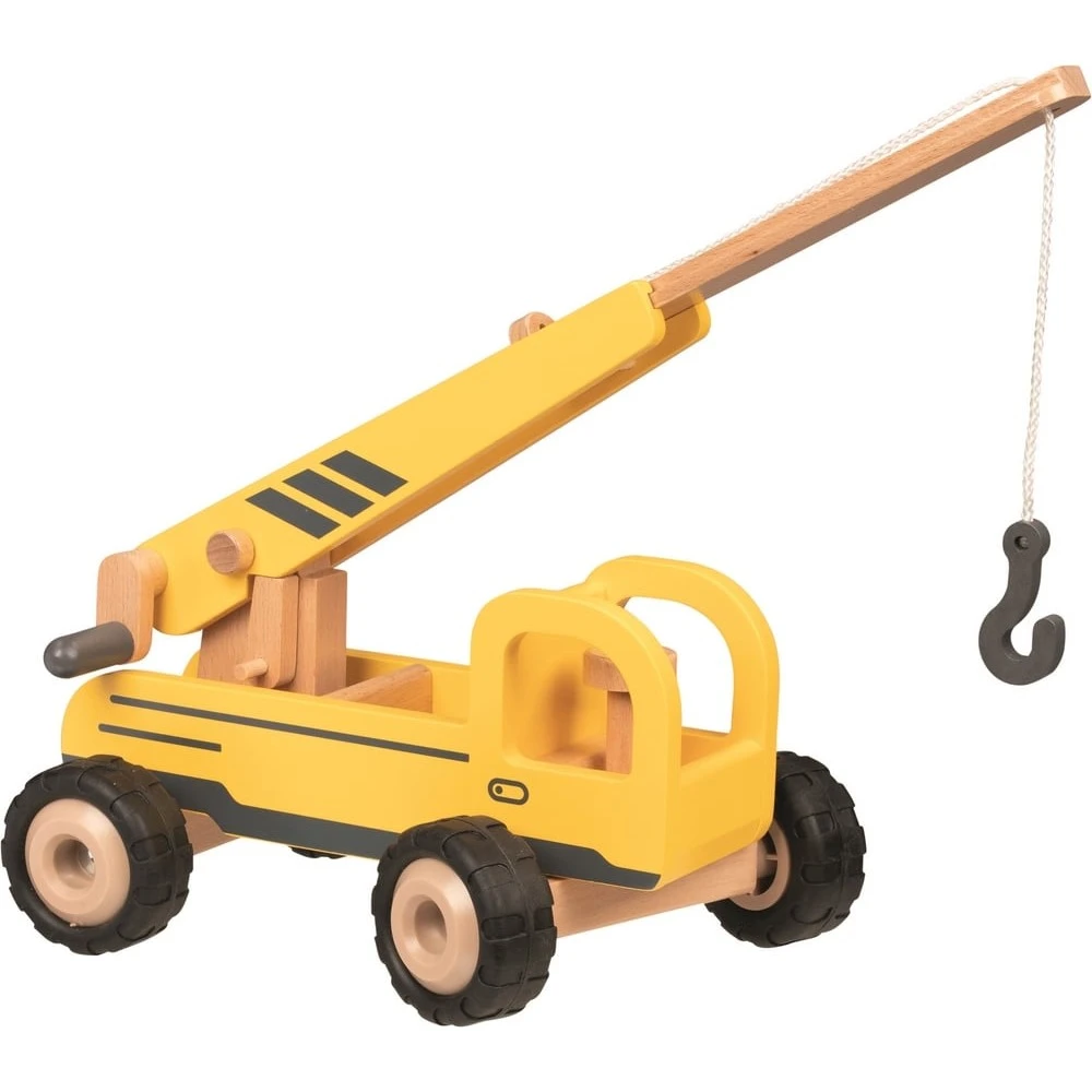 Quoi de mieux que cette grue mobile en bois pour tracter et soulever tout ce dont votre enfant a besoin pour son chantier ?