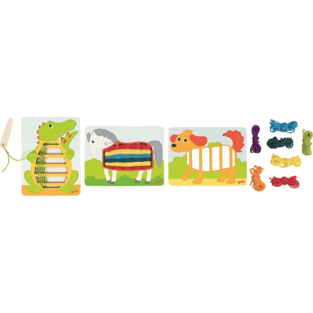 Un jeu en bois amusant et stimulant pour les enfants qui consiste à tisser et créer des animaux (le chien, le cheval et le crocodile). Muni de son aiguille en bois à tisser et de laine, votre bambin pourra habiller ces petits animaux de très jolies couleurs en faisant passer l’aiguille alternativement au-dessus et en dessous de l’image.