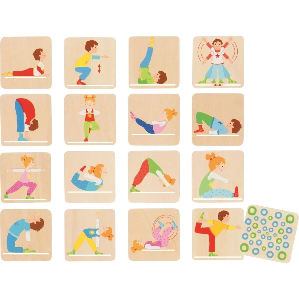 Qui trouvera le plus de paires au cours de la partie ? Ce jeu de mémoire et de concentration pour les enfants à partir du 3 ans est composé de 32 tuiles en bois illustrées avec 16 mouvements de gymnastique différents. Le but du jeu est simple et facile : le joueur qui a retrouvé et rassemblé le plus grand nombre possible de paires de tuiles identiques a gagné.
