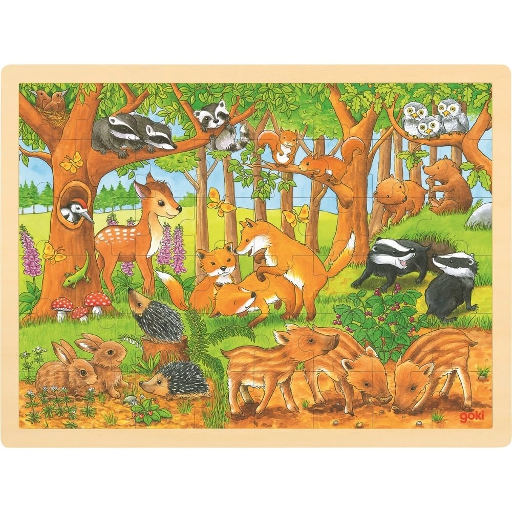 Quels petits animaux peut-on rencontrer dans nos forêts ? Faon, marcassin, lapereau, renardeau, blaireautin, choupisson … Votre enfant les découvrira grâce à ce joli puzzle en bois de 48 pièces !
