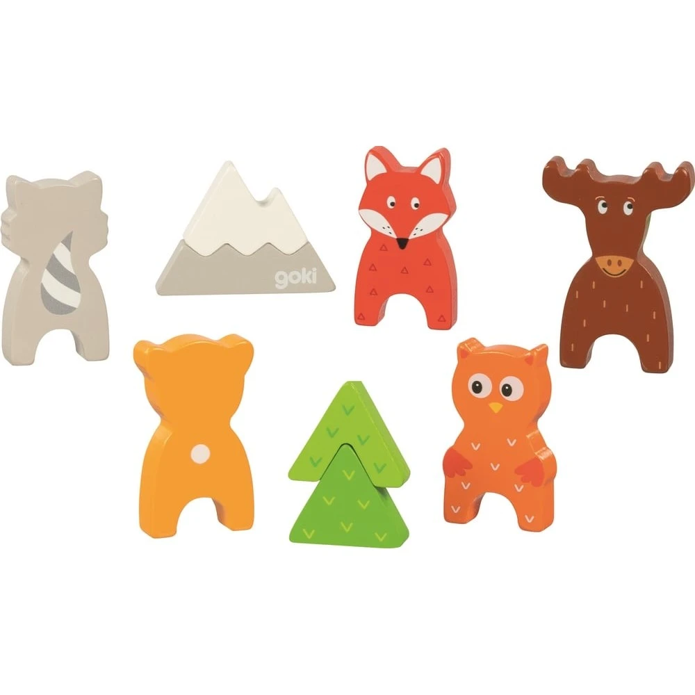 Un jeu deux en un tout en bois sur le thème des animaux sauvages de la montagne – forêt pour plus de plaisir et d’apprentissage : puzzle en bois et jeu d’imagination.