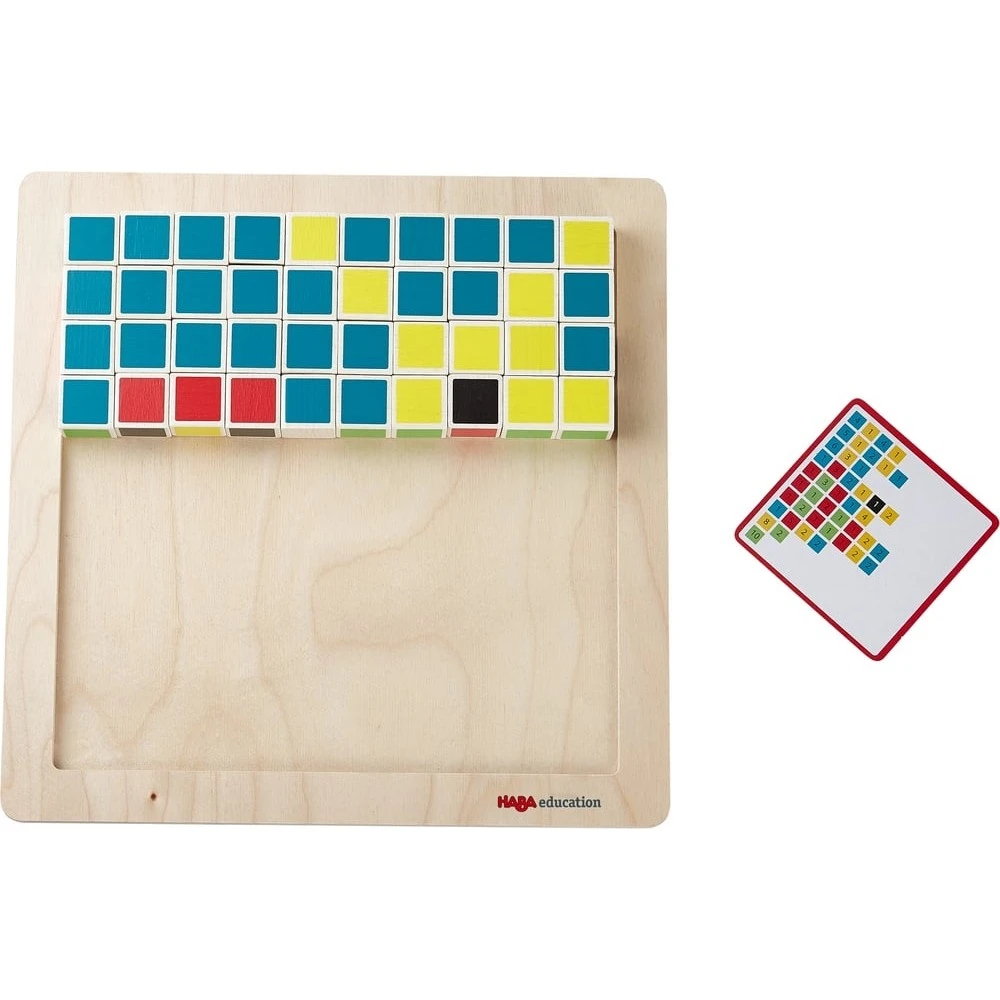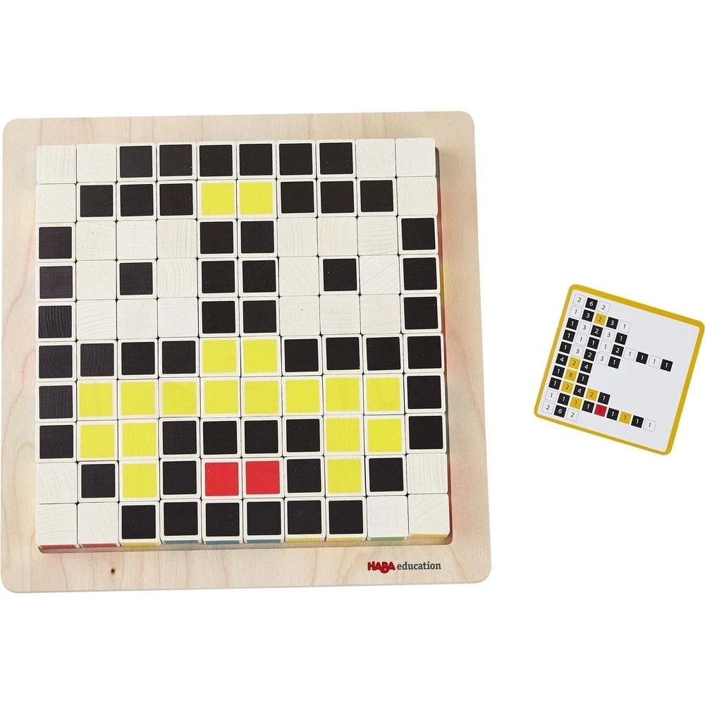 Ce magnifique jeu éducatif en bois permettra à votre enfant de décrypter des codes mystérieux et de comprendre comment un ordinateur convertit les instructions en images couleur à l’écran. Pour déchiffrer les différents codes, il devra décoder ligne par ligne et placer les pixels aux bons endroits sur le plateau. Les trois niveaux de difficulté, matérialisés par un bord coloré sur les cartes de code (vert pour facile, jaune pour intermédiaire et rouge pour difficile), font réfléchir les débutants en programmation et les vrais experts en pixels ! Une fois le concept compris et assimilé, votre enfant pourra devenir lui-même programmeur et développer ses propres codes ! Ce jeu favorise également la motricité fine, la concentration et l’imagination.