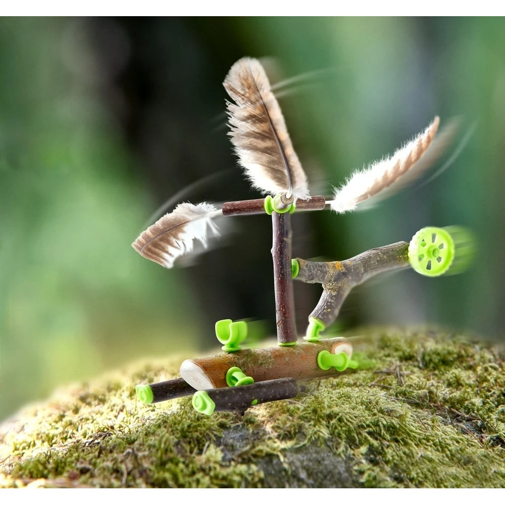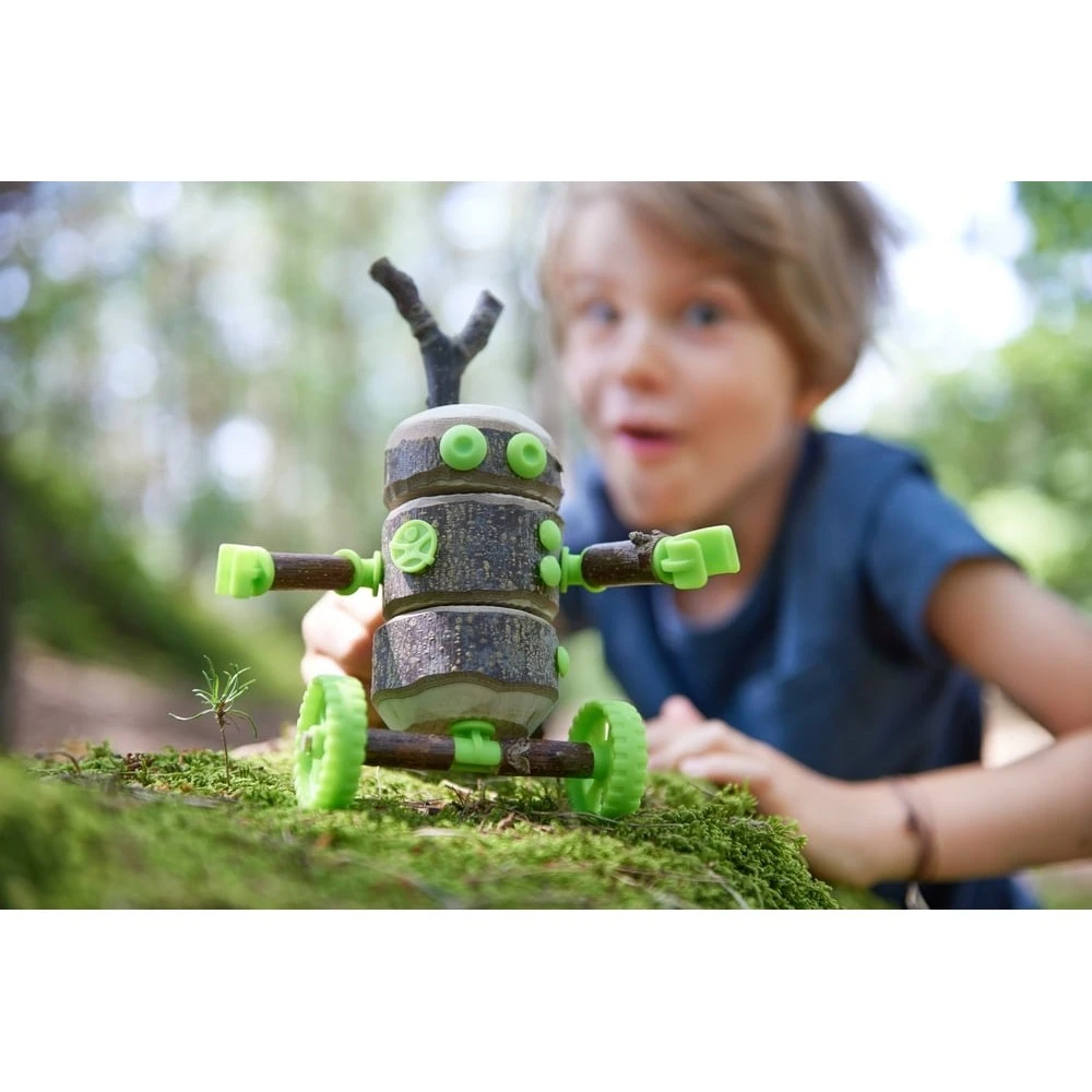 Assembler, scier, percer, emboîter : les connecteurs Terra Kids vous permettront de créer de nombreux véhicules passionnants. Le principe est simple et génial : ramasser du bois dans la nature, l’apporter à la maison pour le travailler, y percer des trous, insérer des connecteurs et le relier à une autre pièce en bois, et les véhicules prennent vie. La notice contient de nombreuses suggestions pour d’autres constructions. Les branches ne sont pas fournies.