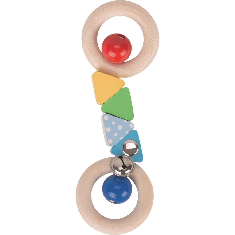 Dans la catégorie des hochets au design original nous demandons le hochet flexible couleurs en fête. Pas de hochet rond ou carré, celui-ci est longitudinal et présente un anneau rigide en bois naturel pour une préhension facilitée à chaque extrémité. Ce hochet en bois éveillera les sens de votre bébé, aussi bien visuel que tactile ou auditif. Ce jouet d’éveil pour bébé lui permettra d’exercer sa dextérité, sa coordination visuelle et sa motricité fine. Il pourra agripper ce hochet d’un côté ou d’un autre, soit avec la main droite, soit avec la main gauche, soit le manier à deux mains, à sa guise. Des mouvements qui développeront sa capacité à saisir les objets et les garder en main. Les jolies couleurs qui composent ce hochet en bois et son grelot à faire retentir procureront de la joie à votre bébé.