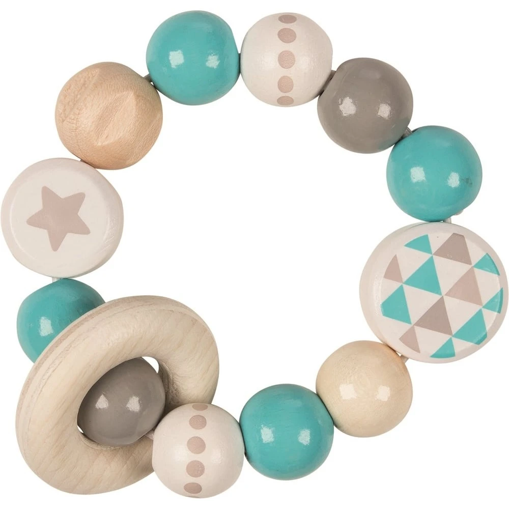 Ce hochet souple nordique, à l’instar de son homologue en protection naturelle apprendra à votre bébé à se servir de ses mains. Il pourra l’agripper, le secouer, le retourner dans tous les sens. L’anneau rigide en bois à déplacer tout autour du hochet lui permettra d’exercer ses capacités de maniement d’objet. Ce hochet en bois éveillera les capacités sensorielles de votre bébé en lui faisant découvrir les matériaux, les formes, les couleurs. Ses perles de bois au design celtique s’alternent autour d’une petite cordelette pour former un hochet souple, qui n’est pas sans rappeler les nuits polaires et magiques des pays nordiques. Pour apprendre à votre bébé à se saisir des objets et à utiliser ses mains en s’amusant, nous vous proposons ce magnifique hochet aux couleurs douces qui éveillera ses réflexes d’agrippement et développera sa capacité à saisir les objets. Il lui procurera également de nombreuses sensations, aidant ainsi votre bout de chou à découvrir le monde. Entièrement en bois et décoré avec de la peinture à l’eau, ce très joli hochet respecte bébé et la planète !