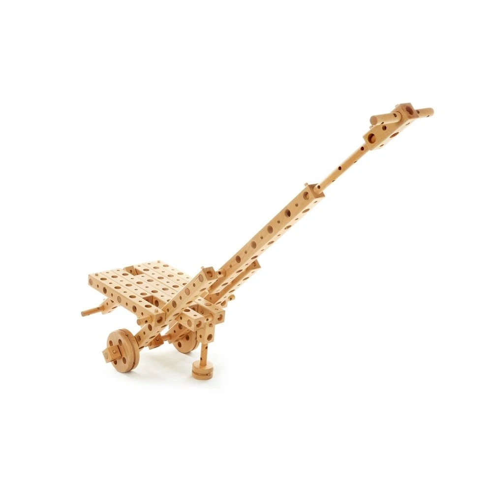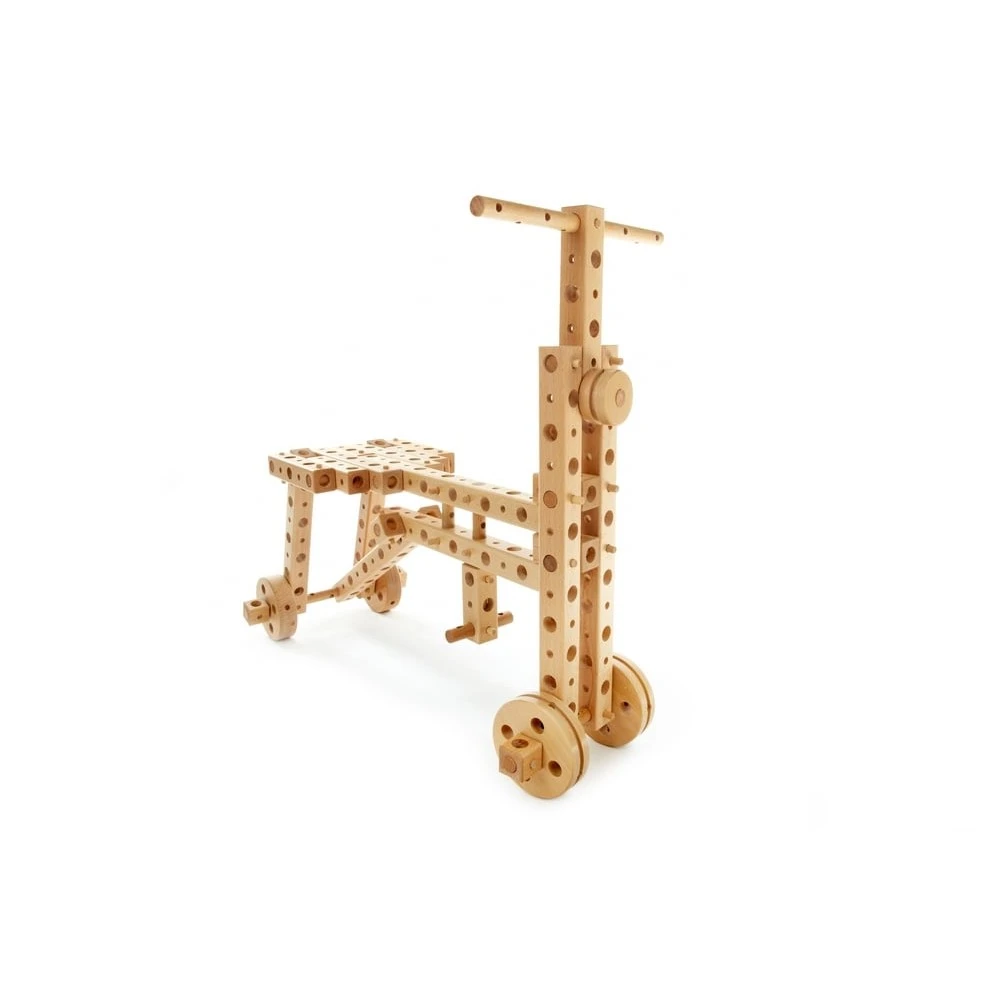 Construisez votre jouet en bois et enfourchez-le ! Avec cet ensemble de construction, votre enfant pourra assembler 7 jouets en bois : un cheval, un kart, une mini-voiture, un tricycle, un pousse-pousse rickshaw, une locomotive et une grue. Ce jouet n’est pas destiné aux petits joueurs, mais plutôt aux petits créateurs. Outres les modèles mentionnés dans le manuel, l’enfant peut utiliser son imagination pour développer sa créativité et concevoir de nouveaux jouets. Garçons ou filles peuvent jouer en solo ou en équipe, ainsi ce jeu les incite à la participation active et au jeu en groupe (collaboratif et coopératif). Ce jouet aide les enfants à stimuler leur concentration et leur visualisation 3D à travers la compréhension de concepts techniques. Ce jouet aide aussi à améliorer la motricité fine des petites mains.