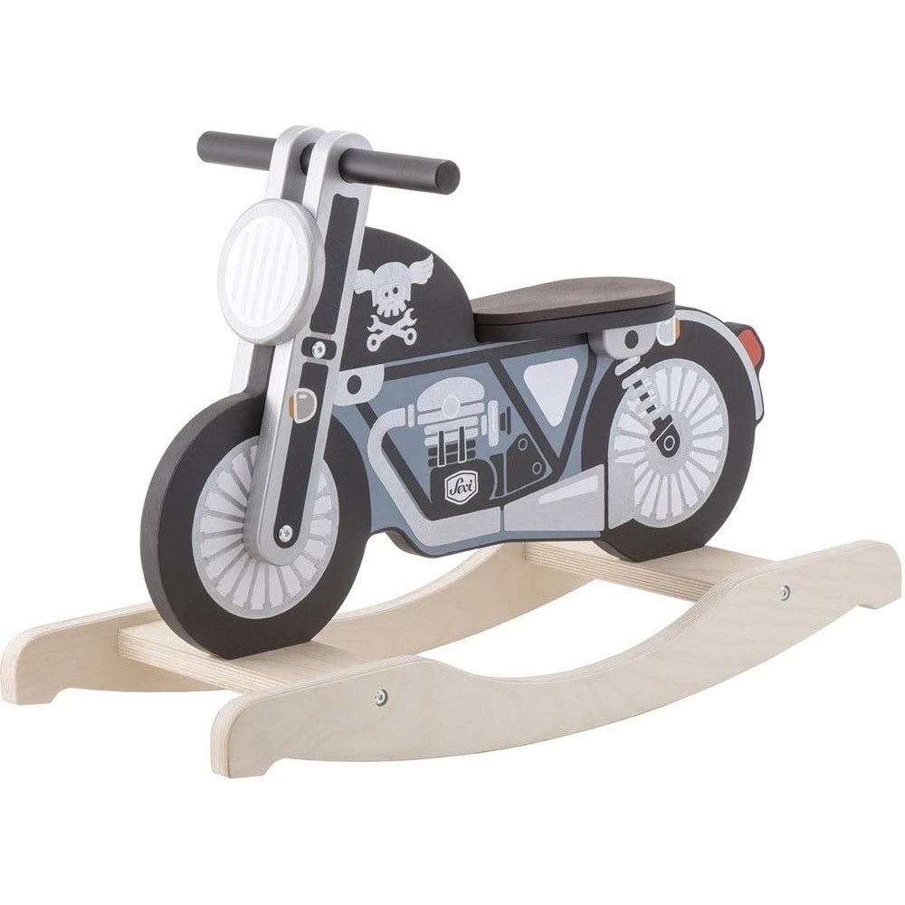 Mettez votre casque, enfourchez votre bolide et faites chauffer le moteur ! Cette magnifique moto à bascule en bois permettra à votre bébé de découvrir la sensation apaisante de se balancer. Au design réaliste, elle séduira à coup sûr votre enfant. Le mouvement de va-et-vient de la moto à bascule sera source d’amusement et d’émotions pour votre petit. Cette bécane originale, de couleur douce et au look vintage, accompagnera votre enfant dans son développement psychomoteur où il devra réaliser des mouvements de va et vient avec son corps, reporter son poids de l’avant à l’arrière du jouet en bois tout en prenant appui sur les poignées de la moto à bascule. Grâce à ce jeu d’éveil en bois, votre enfant travaillera son équilibre et la coordination de ses membres. Car le but c’est quand même de rester sur la moto ! Au volant de sa monture, il pourra s’imaginer une grande épopée et vivre de belles aventures. Il s’immergera dans un univers de biker prenant la route 66 seul, en quête de liberté. Vers quel voyage l’emmènera cette moto à bascule ? Seule son imagination nous le dira.