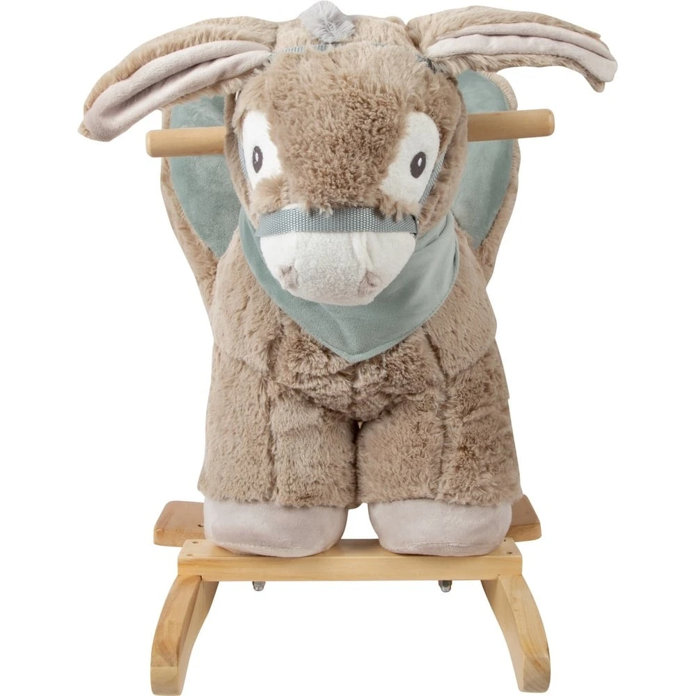 Doux et confortable ! Cet âne à bascule en peluche, avec sa solide construction en bois, est un compagnon fidèle qui vous invite à faire des câlins avec sa fourrure douce et son visage amical. Le siège rembourré en forme de fauteuil avec dossier offre un maintien sûr aux petits cavaliers. Les poignées en bois rondes et robustes les aident à se tenir. L’alternative au cheval à bascule pour tous les amis des ânes ! Cet animal à bascule est un garant d’amusement qui promet de folles balades dans la chambre d’enfant ! Entraîne le contrôle du corps tout en se berçant et encourage le premier jeu de rôle.