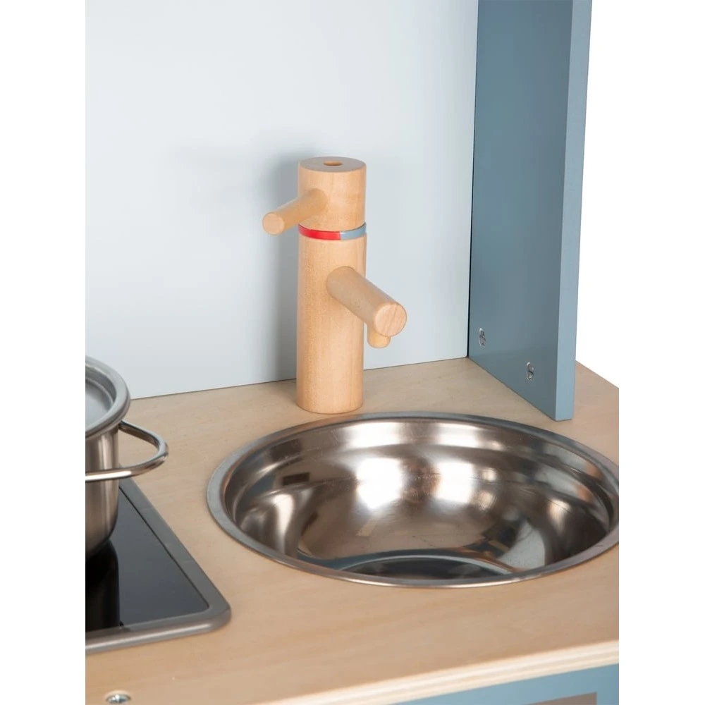 Une cuisine de rêve en format miniature qui ne laisse rien à désirer ! Les enfants qui aiment cuisiner peuvent laisser libre cours à leur imagination avec cette cuisine de jeu et les parents sont tellement ravis du style qu’ils aiment voir ce modèle de cuisine pour enfants non seulement dans la chambre des enfants, mais aussi comme un objet de design mignon dans le salon ! La cuisine pour enfants Marmiton est équipée de bouchons en caoutchouc pour protéger les sols sensibles. Craie pour tableau noir non incluse !
