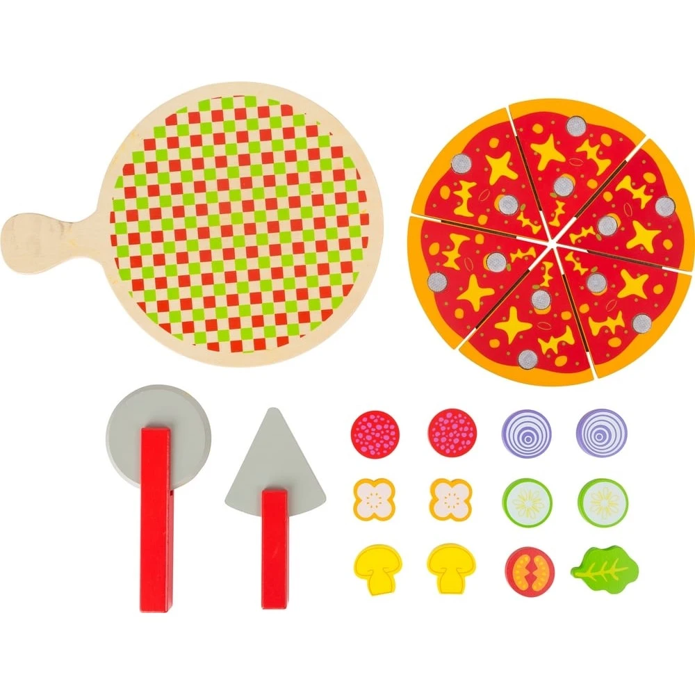 Crée ta pizza comme un vrai italien ! Les différents ingrédients en velcro se posent directement sur la pâte et se retirent à volonté pour faire de nouvelles variations ! Avec la roulette à découper, les parts ralliées par du velcro se laissent découper facilement. Servie sur un plateau en bois, ta première pizza va faire venir l’eau à la bouche de tes invités.