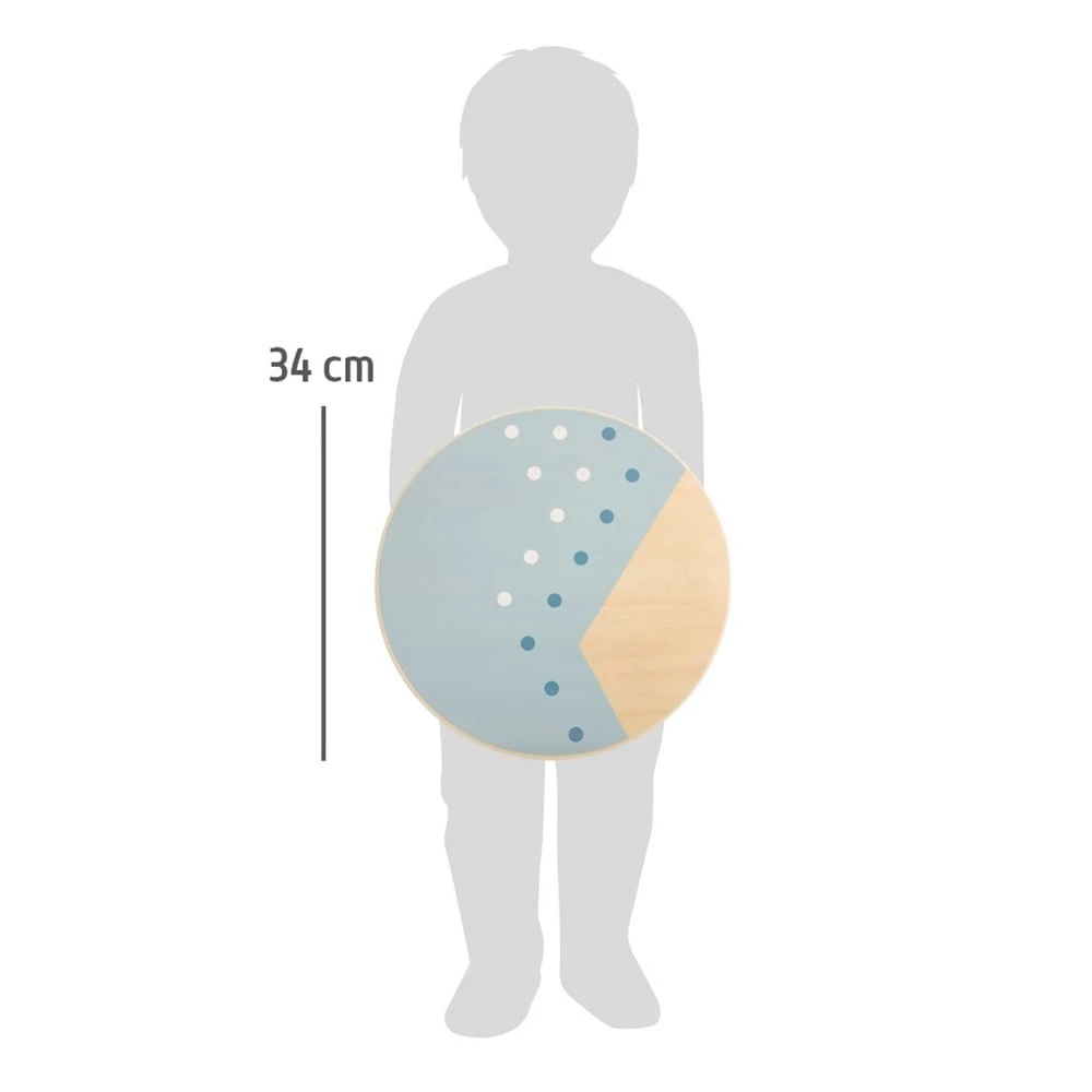 L’une ou l’autre des deux boules en bois peut être vissée au milieu ou décalée latéralement sur la face inférieure. Les deux boules en bois peuvent également être fixées aux options extérieures vissées, ce qui permet d’adapter la planche d’équilibre aux capacités et à l’âge des enfants. Particulièrement pratique : la planche d’équilibre peut être utilisée individuellement ou de manière créative dans le cadre d’un parcours complet de jouets de mouvement de la ligne. Grâce à son design sobre, à sa forme simple et à sa grande quantité de bois de couleur naturelle, la planche s’intègre parfaitement à l’environnement de chaque salon et chambre d’enfant ! Convient également à des fins thérapeutiques.