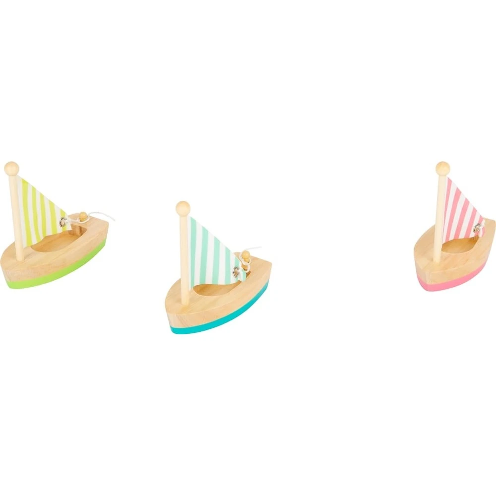 Ces 3 petits voiliers en bois sont idéals pour les bains de votre enfant. Le bain est une occasion particulière et propice pour permettre de stimuler la curiosité de votre enfant, lui permettre de découvrir, tester et éprouver tout en travaillant sa motricité fine. Ces embarcations offriront à votre enfant une expérience qui lui permettra d’appréhender différemment l’eau en constatant que ces jolis petits bateaux flottent et que même s’il essaye de les immerger totalement, ils remonteront inévitablement à la surface. Il pourra également commencer à appréhender les notions de force, de vitesse et de parcours en mettant ses bateaux en mouvement encore et encore jusqu’à comprendre qu’il faut les envoyer fortement pour qu’ils se déplacent loin. Il pourra ainsi organiser sa première régate. Enfin, nos enfants passent de nombreuses heures dans l’eau, que ce soit pour le bain ou l’été pour se rafraichir et jouer, les jeux de bain les accompagneront longtemps et au fil du temps ils deviendront des acteurs de leurs histoires imaginées, jeux importants pour le développement de leur créativité et de leur imagination.