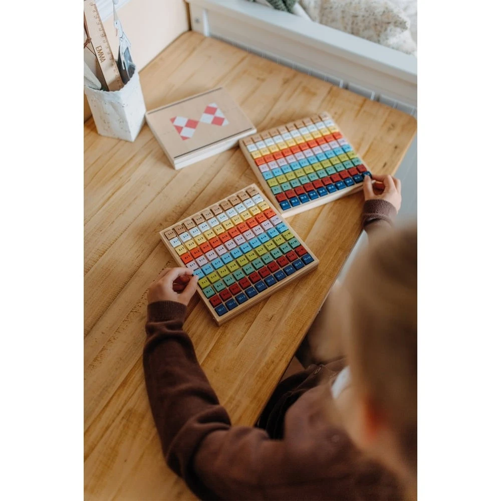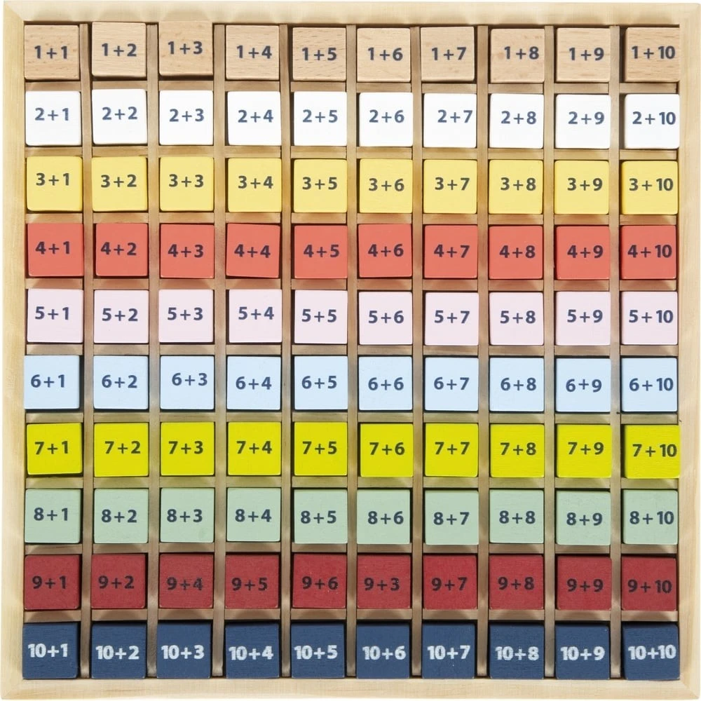 Addition jusqu’au chiffre 20. Ce très bel outil de calcul coloré adapté aux enfants permet d’apprendre en jouant lors de l’exercice d’addition. Fabriqué en bois certifié à 100% FSC®, le tableau d’addition et les cubes de calcul sont particulièrement robustes et durables. Pratique : pour chaque cube, il y a un exercice de calcul avec la solution correspondante sur l’arrière. Les enfants peuvent donc contrôler eux-mêmes leurs résultats de calcul.