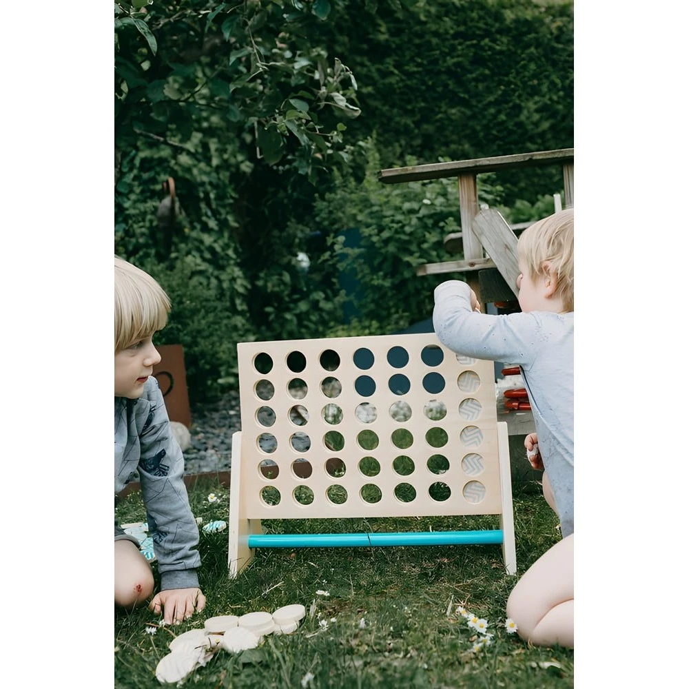 Ce jeu de stratégie en bois de très grand format est un classique qui permettra à votre enfant de développer une tactique, de la modifier au fil du jeu, d’anticiper les conséquences de ses actions et de celles de son adversaire et de prendre des décisions. Ce jeu en bois est également un outil idéal pour que votre bout de chou se repère dans l’espace de la grille et se familiarise avec les notions de verticale, horizontale et diagonales.