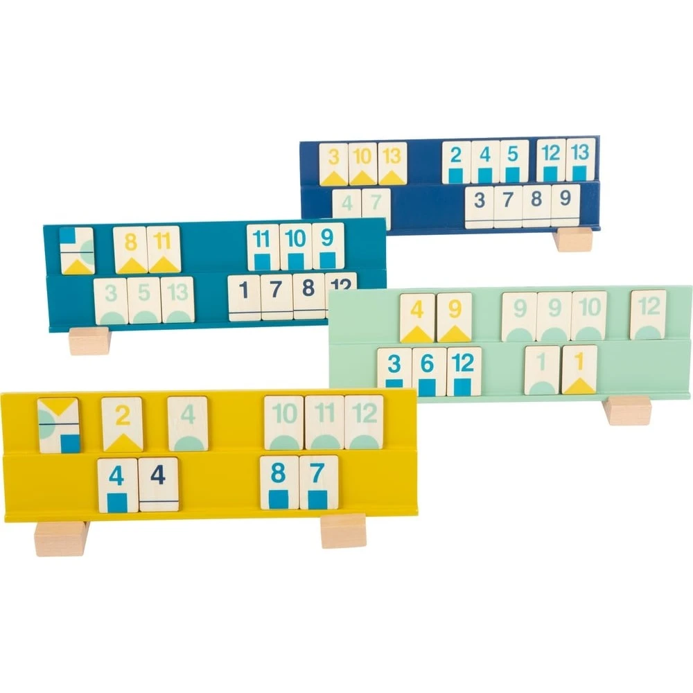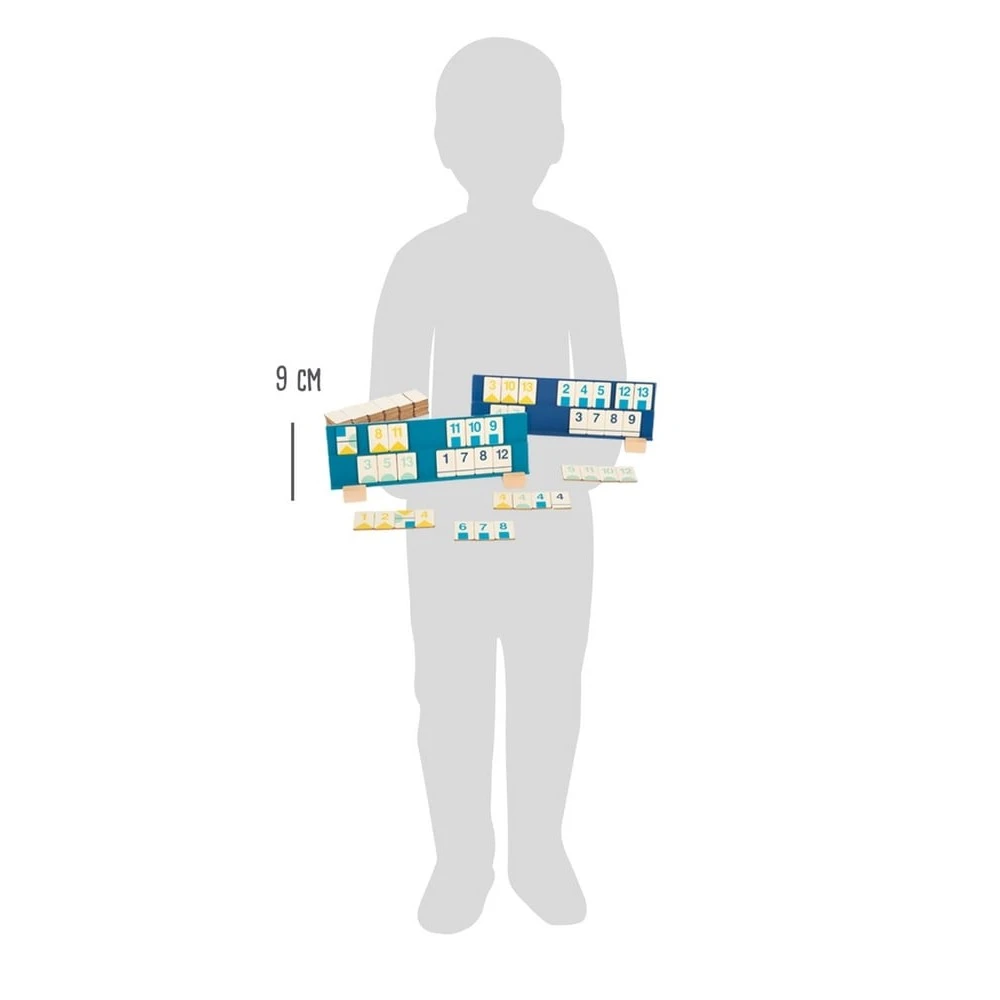 Ce jeu de société traditionnel permettra à votre enfant d’exercer sa concentration et son sens de l’observation. En jouant au Rummy en bois, votre bout de chou apprendra à composer des combinaisons, à compléter des séquences, à comprendre le rôle du joker, à compter des points positifs et négatifs et à utiliser des termes mathématiques tels que série, suite, négative, positif. Ce jeu peut être amené à évoluer à tout moment, à se complexifier, à se débloquer. Il demandera un suivi constant de la situation et une remise en cause permanente des options envisagées. Il lui faudra comprendre, mémoriser et appliquer les règles, apprendre à attendre son tour, mais aussi que l’on ne peut pas gagner à chaque fois.