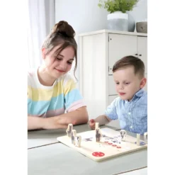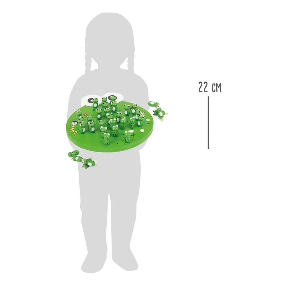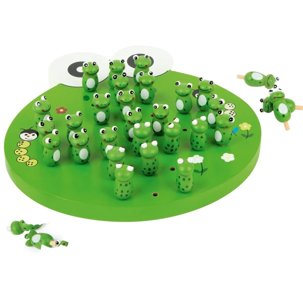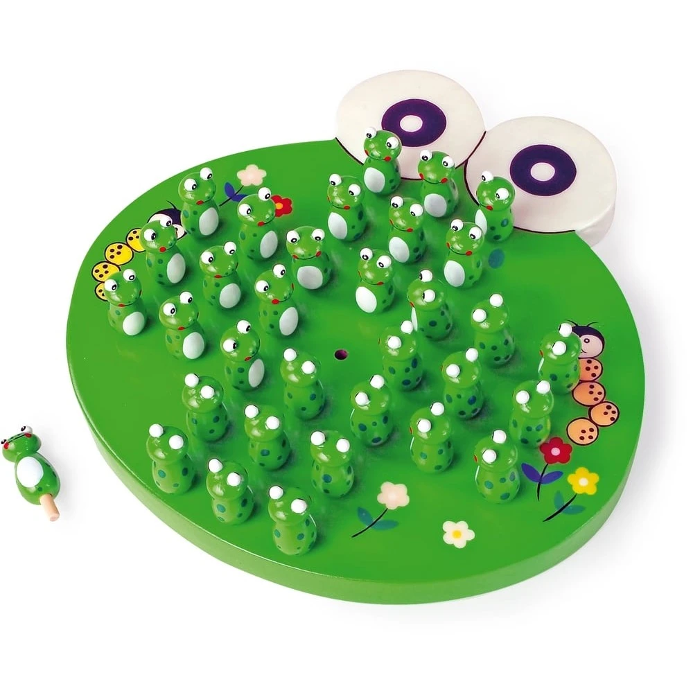 Ce jeu de réflexion en bois est un classique qui permettra à votre enfant de développer tactique, méthode, raisonnement et concentration. Ce jeu traditionnel en bois, revisité sur cette version enfantine colorée, est également un outil idéal pour que votre bout de chou se repère dans l’espace de la grille et se familiarise avec les notions de verticale, horizontale et diagonale. Ce jeu de solitaire comporte un plateau de jeu en bois rond ainsi que 33 pions à l’effigie d’une magnifique petite grenouille.