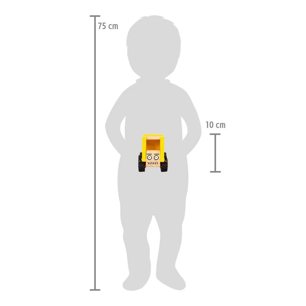 Cette petite voiture bétonnière jaune en bois, robuste, facile à manier, stimulera la motricité fine de votre bébé ainsi que son imagination et son langage. Grâce à cet engin de chantier miniature, votre enfant pourra jouer un rôle, se mettre en scène, se plonger dans l’univers des travaux en se racontant des histoires ou en inventant des scénarios.