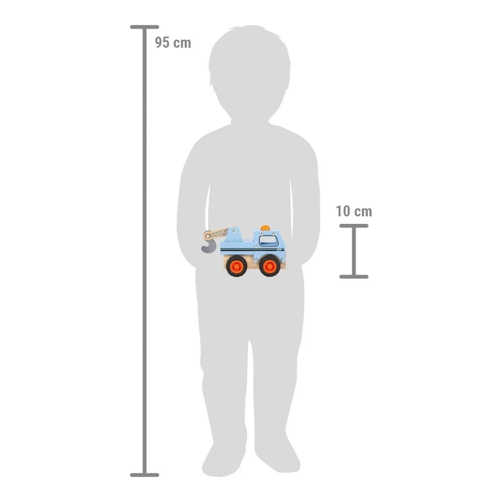 Ce camion-grue en bois certifié FSC® 100% monté sur des roues robustes et recouvertes de caoutchouc est prêt à intervenir lorsque la prochaine mission de remorquage s’imposera. Équipé d’une grue de chargement mobile avec crochet qui sert de dispositif de remorquage, il permet de jouer à des jeux de rôle créatifs et proches de la réalité. Grâce aux bords arrondis et aux ouvertures des fenêtres, le véhicule en bois est facile à saisir et à déplacer, même pour les petites mains.